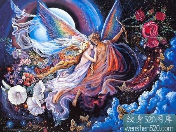 彩色天使爱神纹身手稿_天使纹身图案大全_纹身图吧