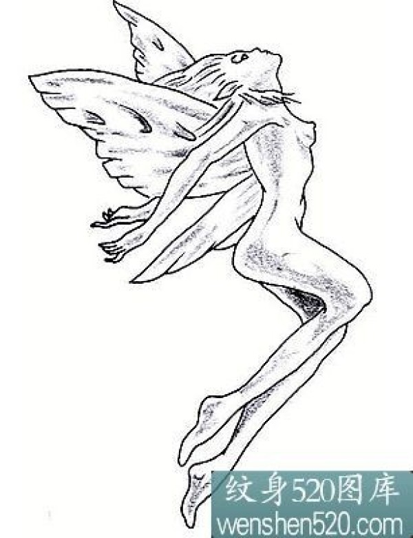 黑色女天使纹身手稿_天使纹身图案大全_纹身图吧