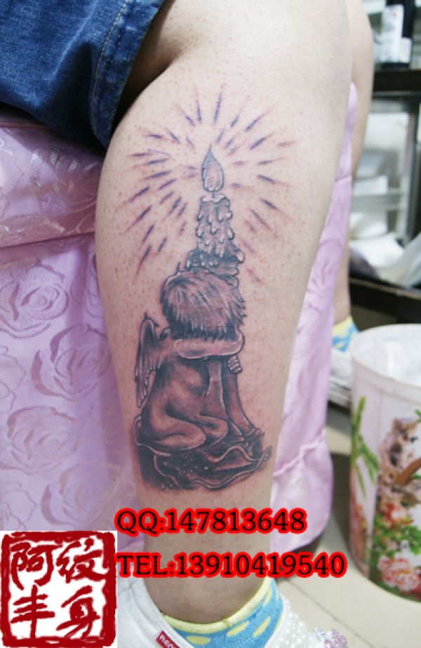 手臂纹身图案大全手臂天使丘比特纹身图案图_天使纹身图案大全_纹身图吧