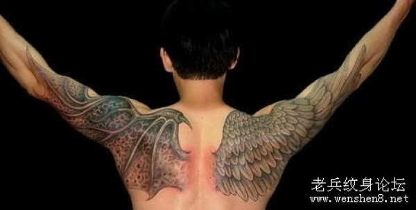 男人纹身图案背部天使恶魔翅膀纹身图案_天使纹身图案大全_纹身图吧