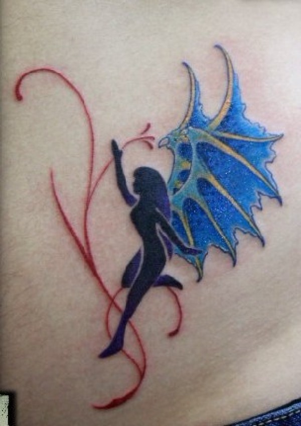 腹部纹身图案腹部彩色天使翅膀纹身图案_天使纹身图案大全_纹身图吧