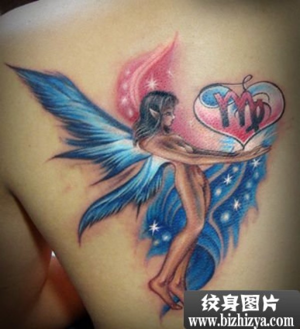 后背上漂亮的两张彩色精灵天使纹身_天使纹身图案大全_纹身图吧