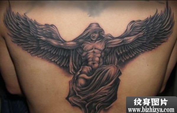 后背上霸气的守护男天使纹身作品欣赏_天使纹身图案大全_纹身图吧