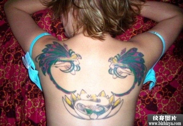 女生背部孔雀天使纹身图案图片_天使纹身图案大全_纹身图吧