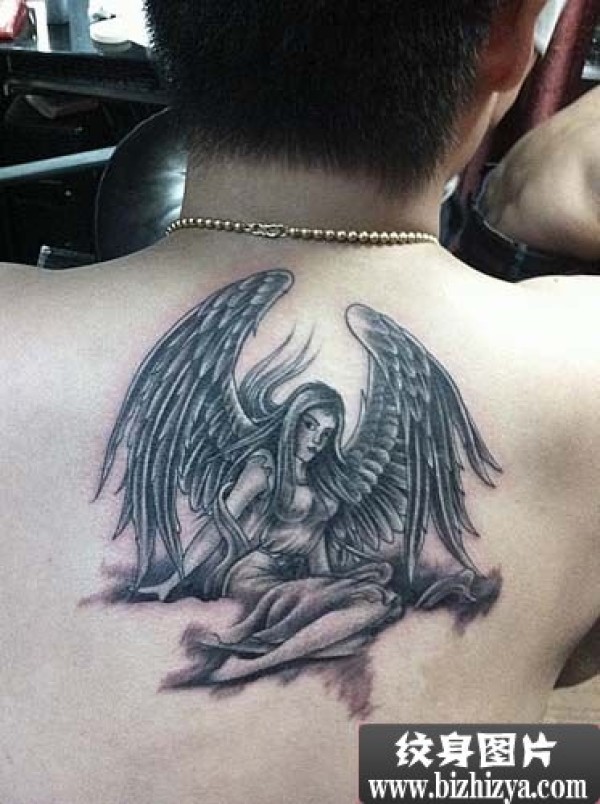 男人后背性感天使纹身图案图片_天使纹身图案大全_纹身图吧