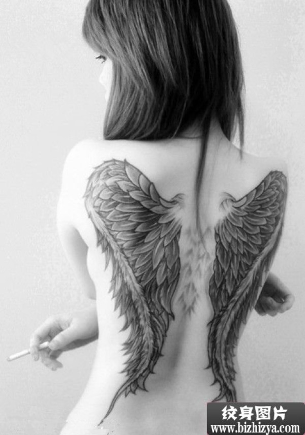 女生背上唯美天使翅膀纹身图案图片_天使纹身图案大全_纹身图吧