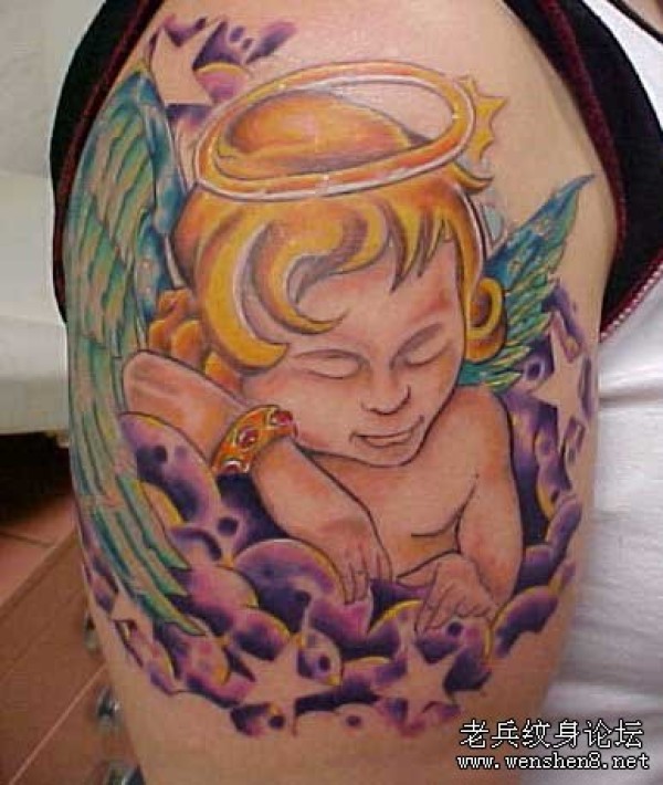 手臂纹身图案大全手臂天使丘比特纹身图案图_天使纹身图案大全_纹身图吧