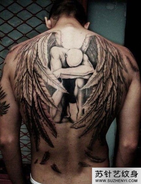 后背纹身图案大全超酷超帅的满背天使翅膀纹_天使纹身图案大全_纹身图吧