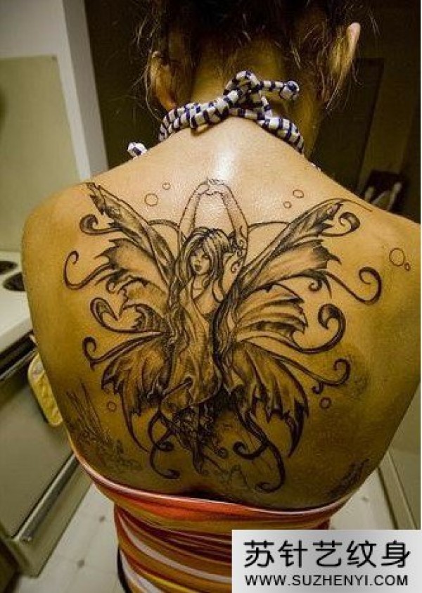 性感美女后背创意天使纹身_天使纹身图案大全_纹身图吧