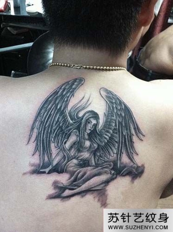 男人后背性感天使时尚纹身图_天使纹身图案大全_纹身图吧