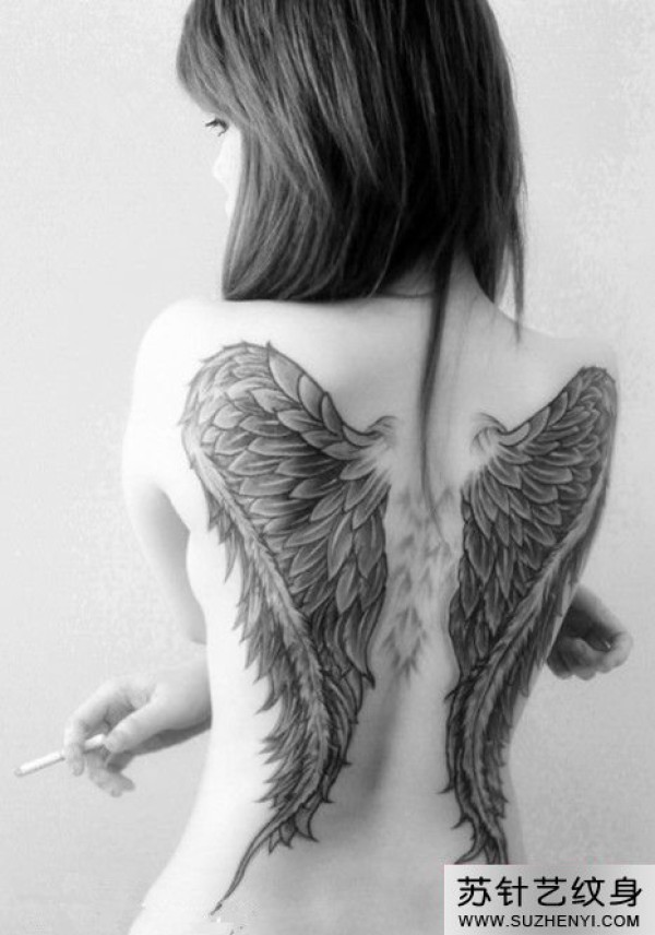 女生性感时尚背上唯美天使翅膀纹身_天使纹身图案大全_纹身图吧