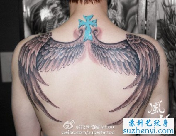 后背纹身图案大全超酷超帅的满背天使翅膀纹_天使纹身图案大全_纹身图吧