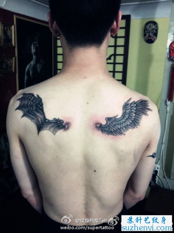 一半天使一半恶魔的翅膀纹身图案_天使纹身图案大全_纹身图吧