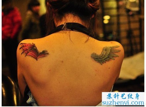 流行的一半天使一般恶魔的翅膀纹身_天使纹身图案大全_纹身图吧