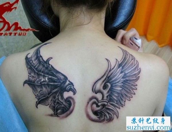 背部天使恶魔的翅膀纹身图案_天使纹身图案大全_纹身图吧