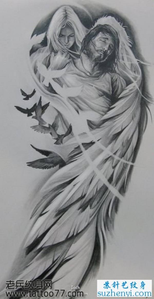 天使翅膀耶稣纹身_天使纹身图案大全_纹身图吧