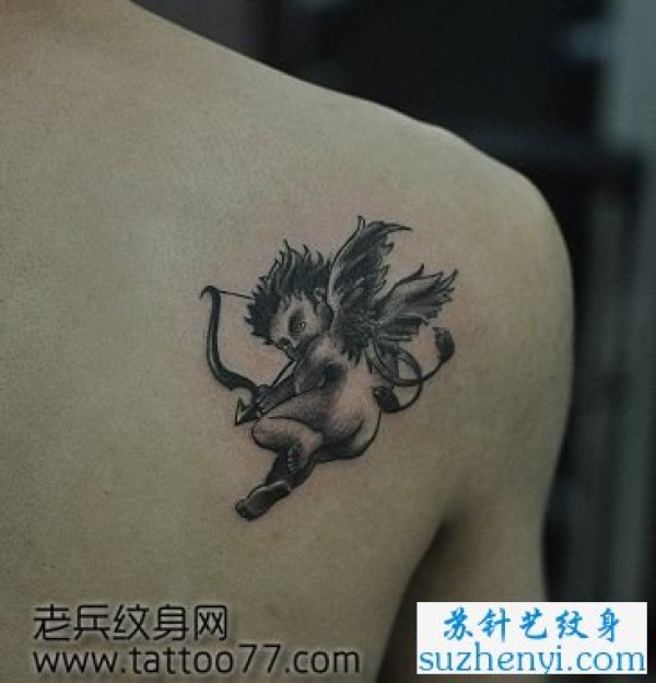 背部小天使丘比特纹身_天使纹身图案大全_纹身图吧