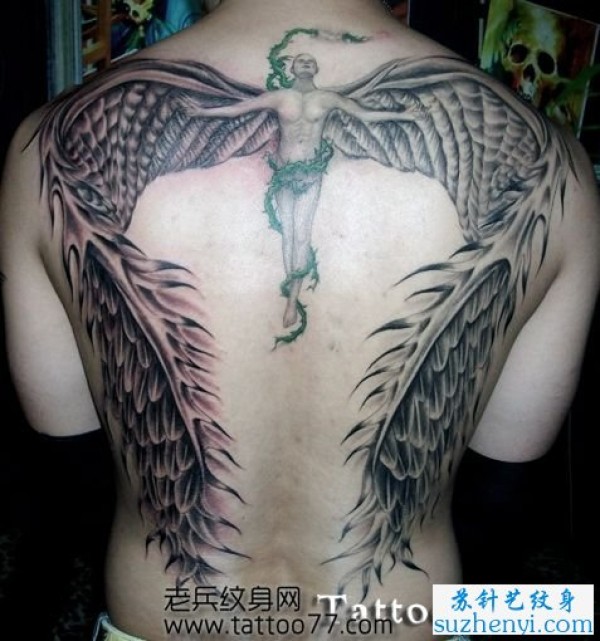 后背纹身图案大全超酷超帅的满背天使翅膀纹_天使纹身图案大全_纹身图吧
