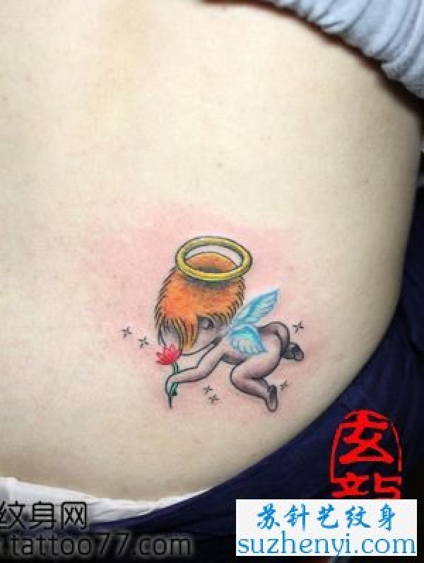腰部小天使丘比特纹身_天使纹身图案大全_纹身图吧
