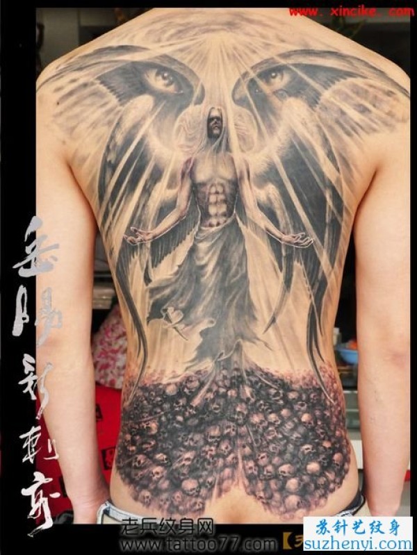 后背纹身图案大全超酷超帅的满背天使翅膀纹_天使纹身图案大全_纹身图吧