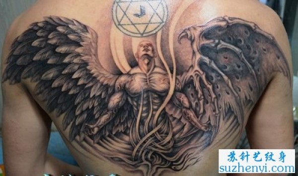 后背纹身图案大全超酷超帅的满背天使翅膀纹_天使纹身图案大全_纹身图吧