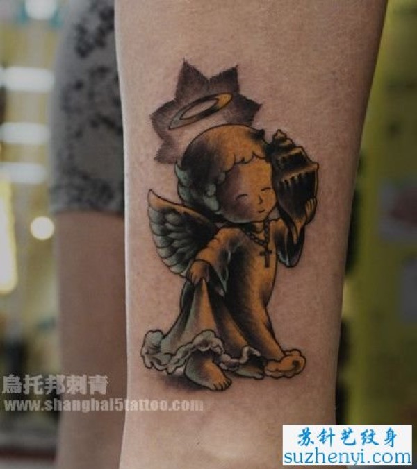 腿部得小天使纹身_天使纹身图案大全_纹身图吧