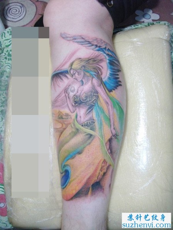 腿部彩色天使纹身_天使纹身图案大全_纹身图吧