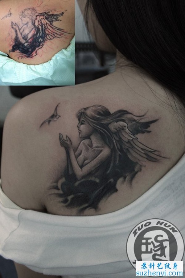 肩背天使翅膀纹身_天使纹身图案大全_纹身图吧