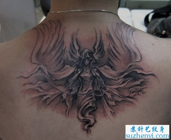背部处的守护天使纹身_天使纹身图案大全_纹身图吧