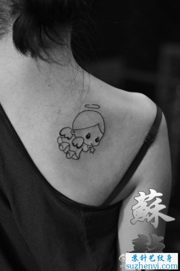 肩背超萌的小天使纹身_天使纹身图案大全_纹身图吧