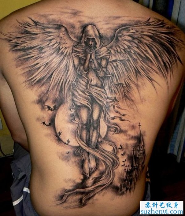 后背纹身图案大全超酷超帅的满背天使翅膀纹_天使纹身图案大全_纹身图吧
