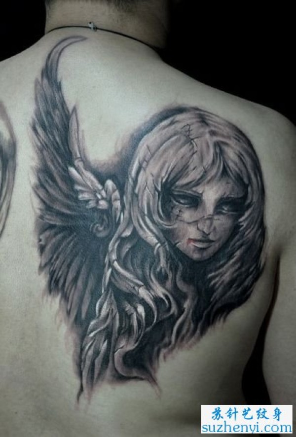 后背纹身图案大全超酷超帅的满背天使翅膀纹_天使纹身图案大全_纹身图吧