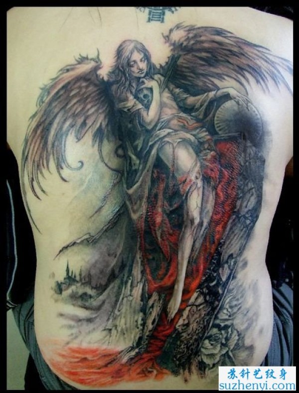 后背纹身图案大全超酷超帅的满背天使翅膀纹_天使纹身图案大全_纹身图吧