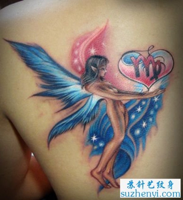 肩部彩色天使精灵翅膀纹身_天使纹身图案大全_纹身图吧