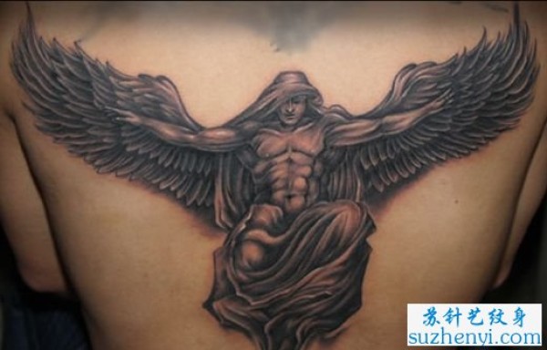 背部守护天使纹身图案纹身图片_天使纹身图案大全_纹身图吧