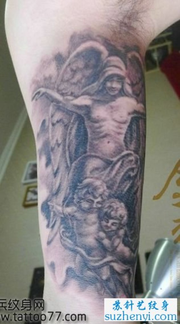 手臂纹身图案大全手臂天使丘比特纹身图案图_天使纹身图案大全_纹身图吧