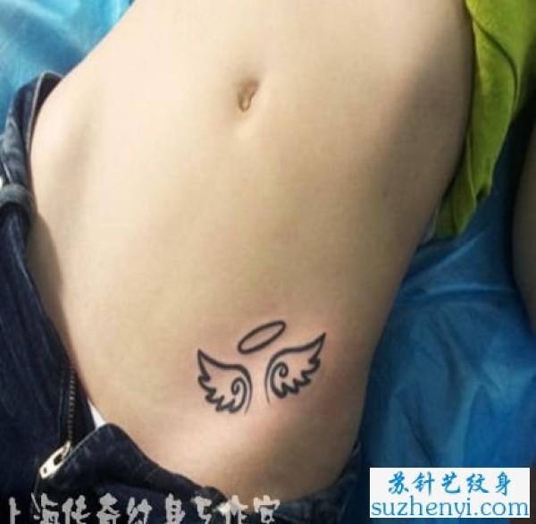 腹部图腾天使翅膀纹身_天使纹身图案大全_纹身图吧