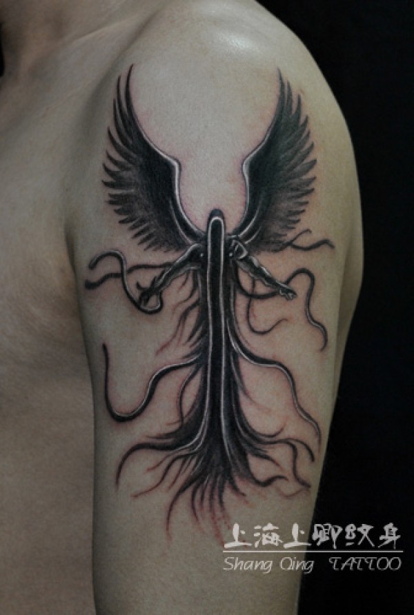 黑暗天使上海上卿纹身作品_天使纹身图案大全_纹身图吧