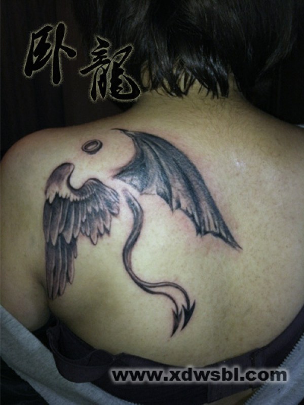 恶魔天使翅膀纹身图案_天使纹身图案大全_纹身图吧