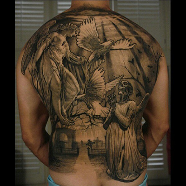 后背纹身图案大全超酷超帅的满背天使翅膀纹_天使纹身图案大全_纹身图吧