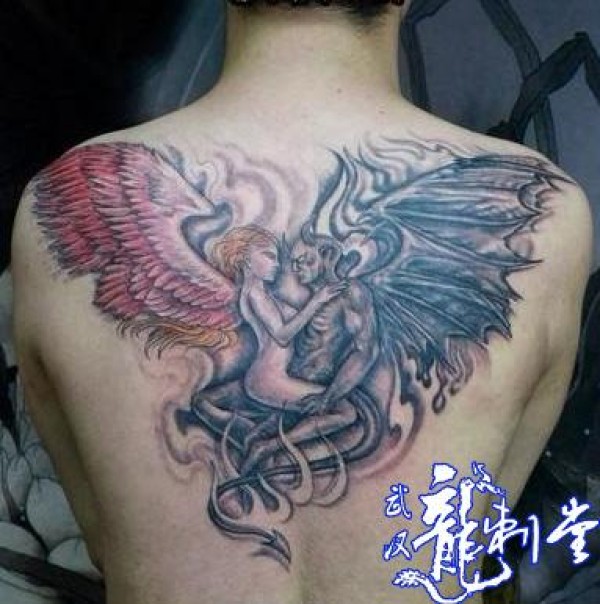 恶魔与天使纹身背部纹身_天使纹身图案大全_纹身图吧