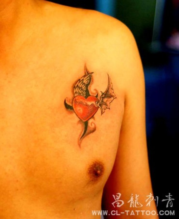 天使恶魔纹身爱心文身翅膀纹身图_男士小图_天使纹身图案大全_纹身图吧