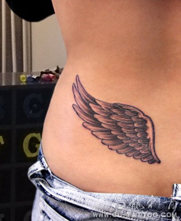 后腰天使翅膀_女生黑白_天使纹身图案大全_纹身图吧