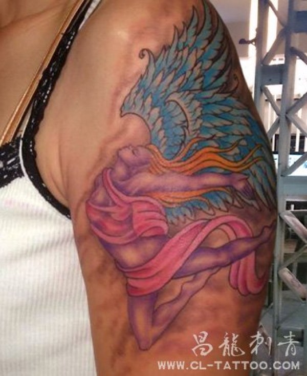 手臂彩色天使刺青_女生彩色_天使纹身图案大全_纹身图吧