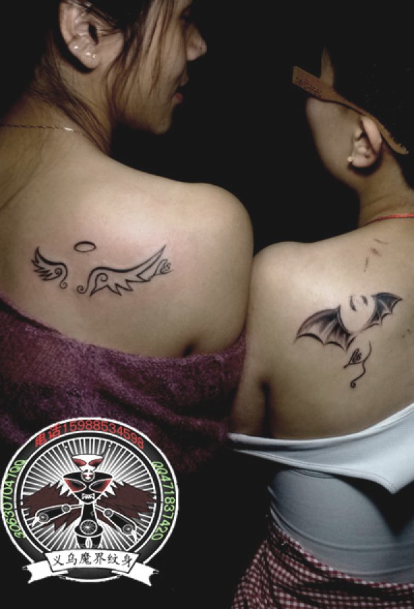 情侣纹身/恶魔天使之翼刺青签名_天使纹身图案大全_纹身图吧