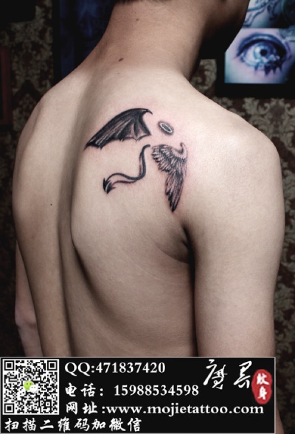 恶魔天使翅膀纹身图案_天使纹身图案大全_纹身图吧