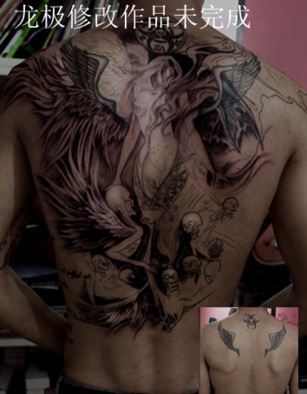后背纹身图案大全超酷超帅的满背天使翅膀纹_天使纹身图案大全_纹身图吧