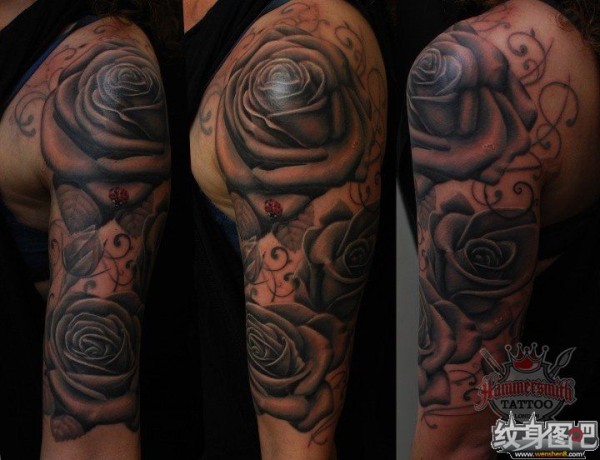 欧美玫瑰纹身 男生手臂上花朵纹身图片