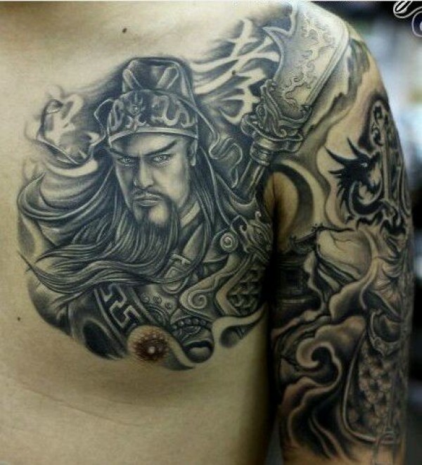 帅气的男人关公半甲纹身