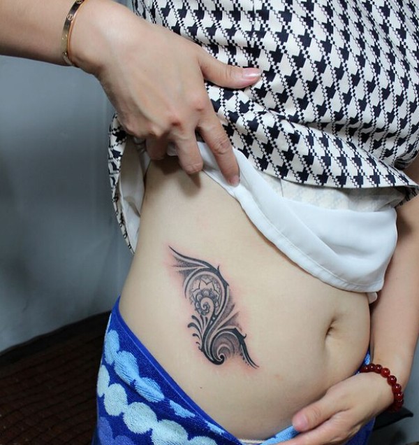 女性腰部莲花花纹刺青_腰部纹身图案大全_纹身图吧